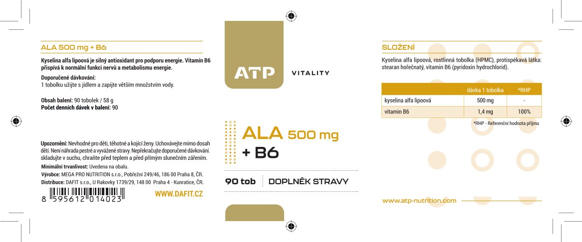 ATP Vitality ALA 500 mg + B6 90 tob - Description