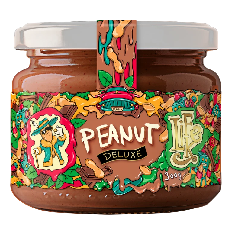 85% dry roasted peanuts, 14% 100% chocolate (cocoa mass), 1% cinnamon.