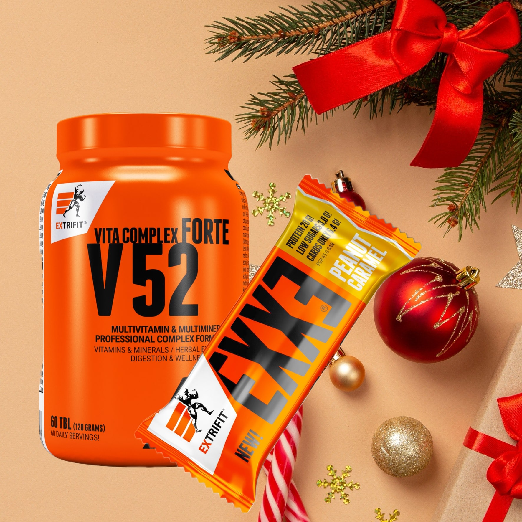 V52 je profesionální multivitamínová a multiminerálová formule obsahující 52 aktivních látek. Nyní ve výhodné akci s tyčinkou Exxe Iso Protein Bar 31% 65 g Extrifit ZDARMA.