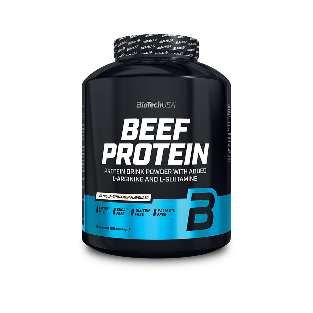 Beef Protein od BioTechu je hovězí protein bez cukru, laktózy a lepku. Základ proteinu tvoří hydrolyzovaná peptidová forma hovězích bílkovin, která je obohacena o L-glutamin a L-arginin. Hovězí protein je zdrojem kvalitních bílkovin, které jsou snadněji stravitelné, než nízkotučné hovězí maso (např. steak), má skvělou vstřebatelnost a jako všechny živočišné bílkoviny i vynikající biologickou hodnotu. Beef Protein je bez přidaného kreatinu a přestože má nízký obsah tuku, obsahuje kokosový tuk, který je vynikajícím zdrojem MCT (triglyceridy se středním řetězcem).