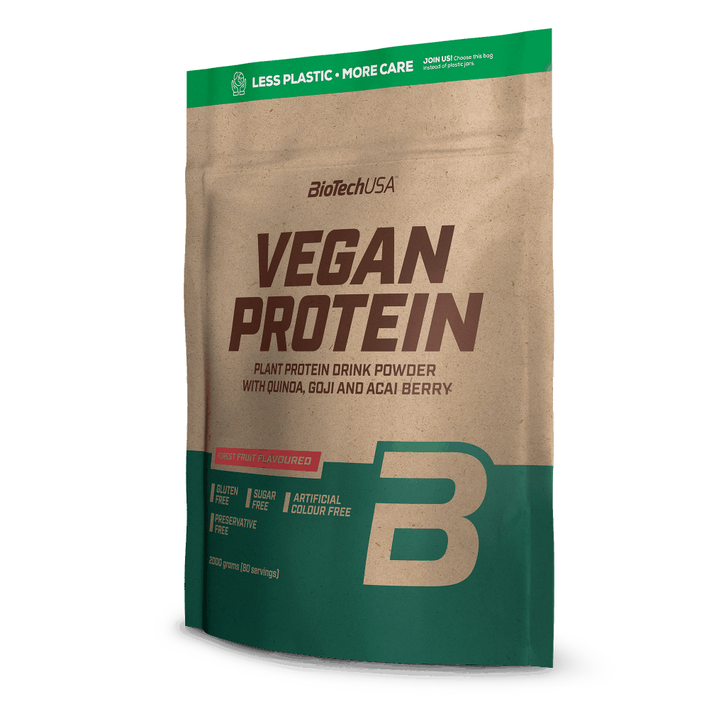 Vegan protein is a complete plant protein that is a combination of two types of proteins that complement each other perfectly. Rice protein and pea protein. This blend is also enriched with superfoods in the form of quinoa, goji and acai.