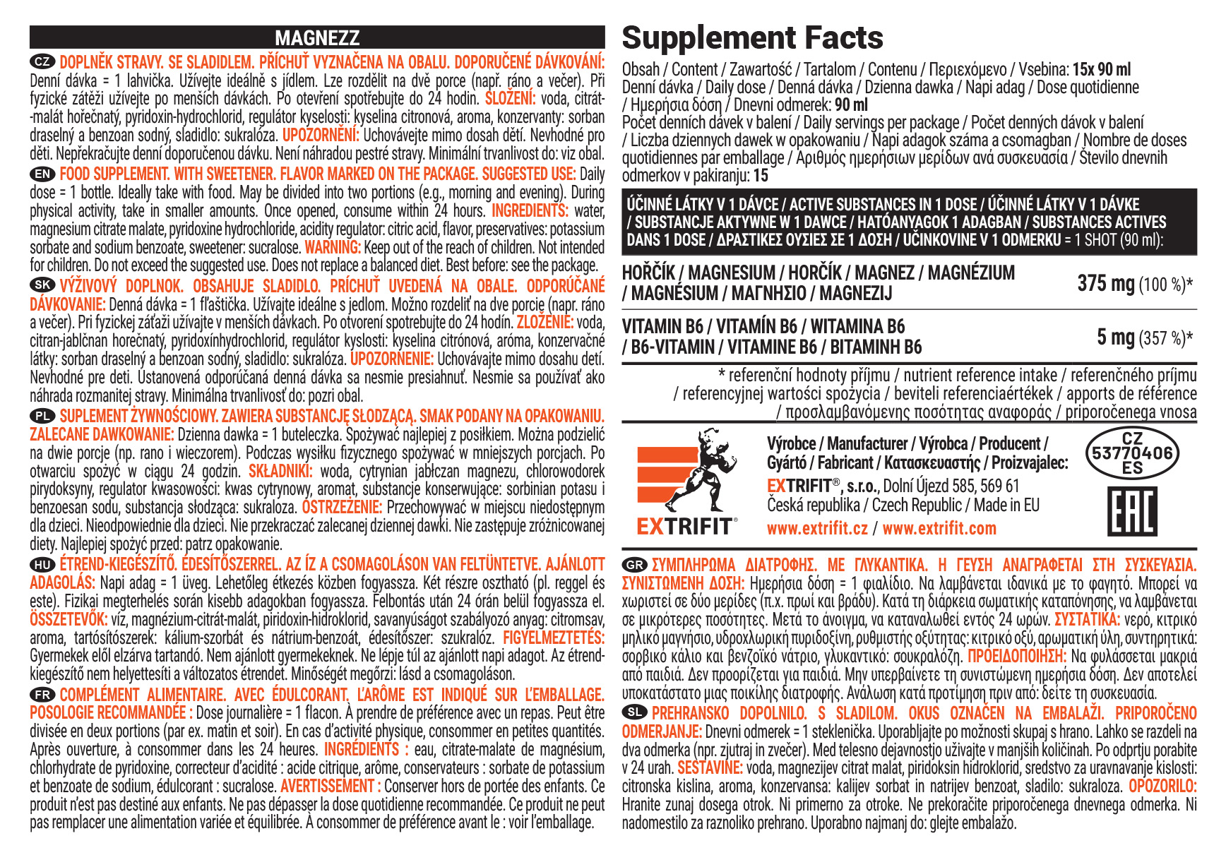 Celková hmotnost obsahu v 1 balení produktu v g: 90Extrifit Magnezz Shot! 90 ml lime - Složení