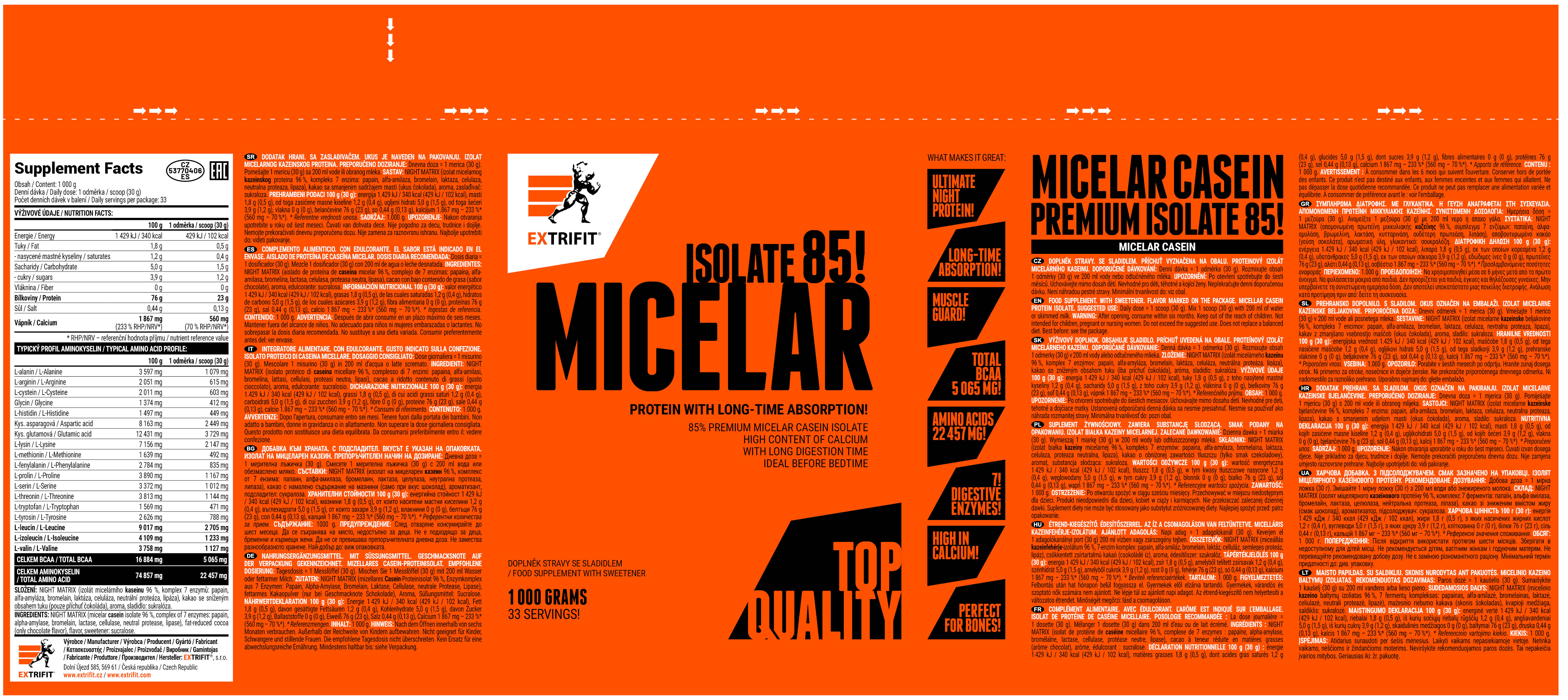 Extrifit Micelar Casein 1000 g - Složení