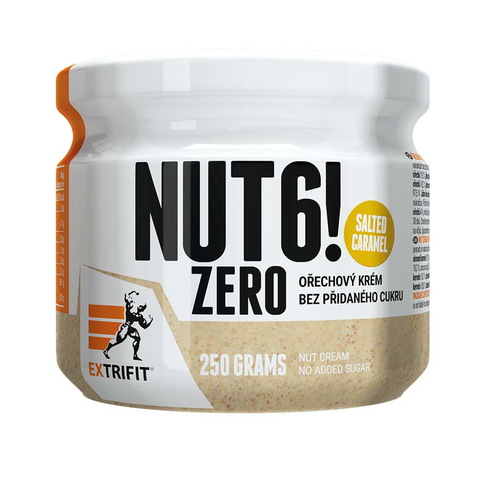 NUT 6! ZERO je oříšková superpotravina od společnosti EXTRIFIT® - krém z ořechů, kokosu a arašídů, který nabízíme jak ve variantě natural (bez příchuti), tak ve třech delikátních příchutích – čokoláda, slaný karamel a skořice. Krém je složen z jader kešu ořechů, lískových ořechů, mandlí, arašídů, vlašských ořechů a dužiny kokosu. NUT 6! ZERO je vyroben přímo ve výrobních halách společnosti Extrifit® v České republice, a to od A až po Z!
