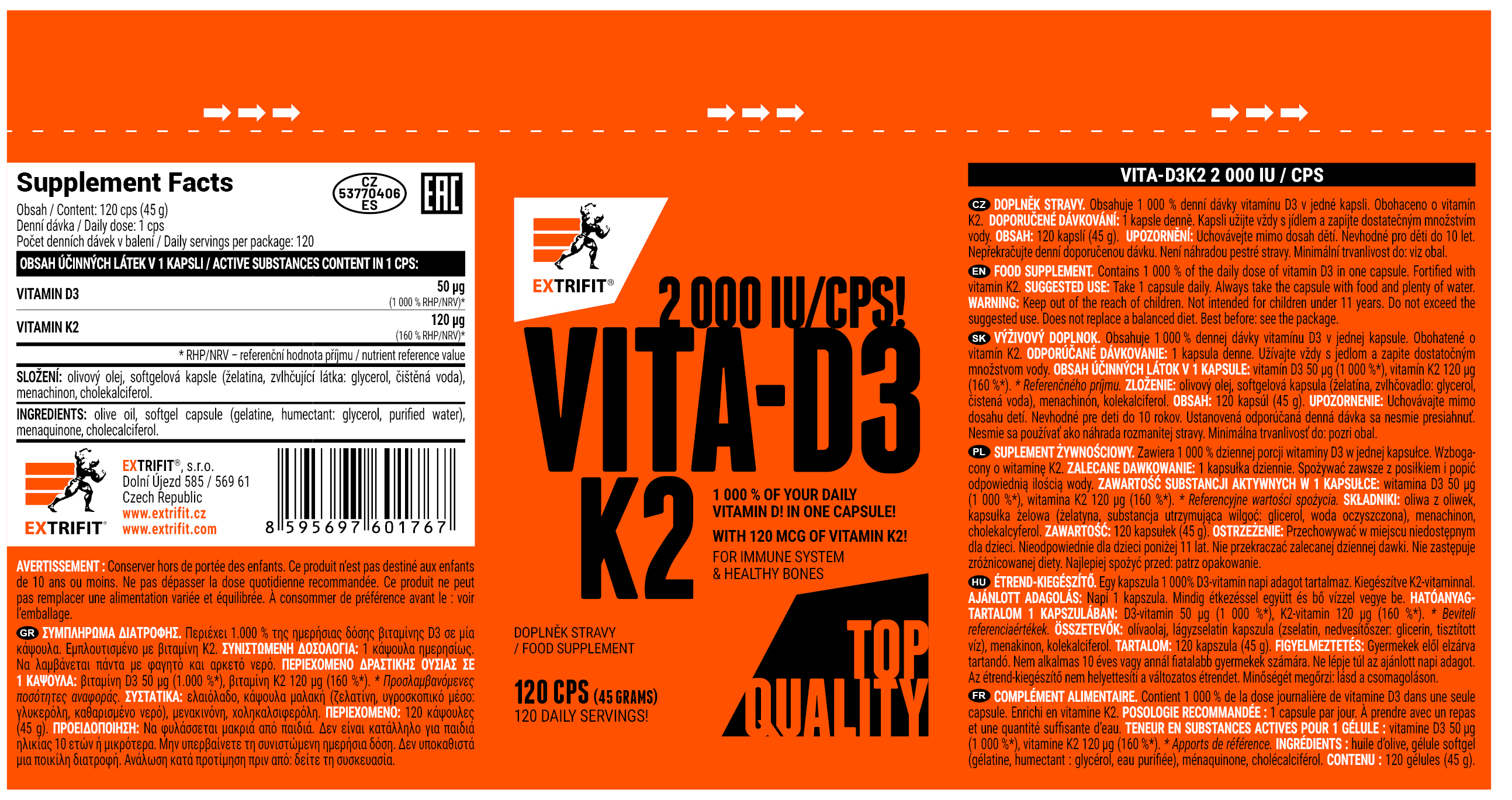 Extrifit Vita-D3K2 2000 IU/CPS 120 cps - Popis