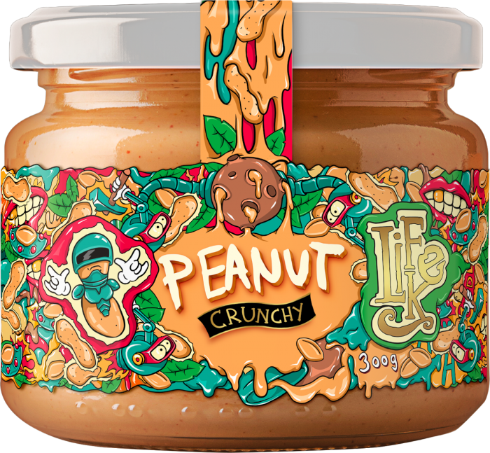 Jemný arašídový krém (varianta smooth) nebo arašídový krém s kousky arašídů (varianta crunchy). Velmi kvalitně zpracované arašídy, žádný přidaný cukr, palmový olej nebo konzervanty a stabilizátory.