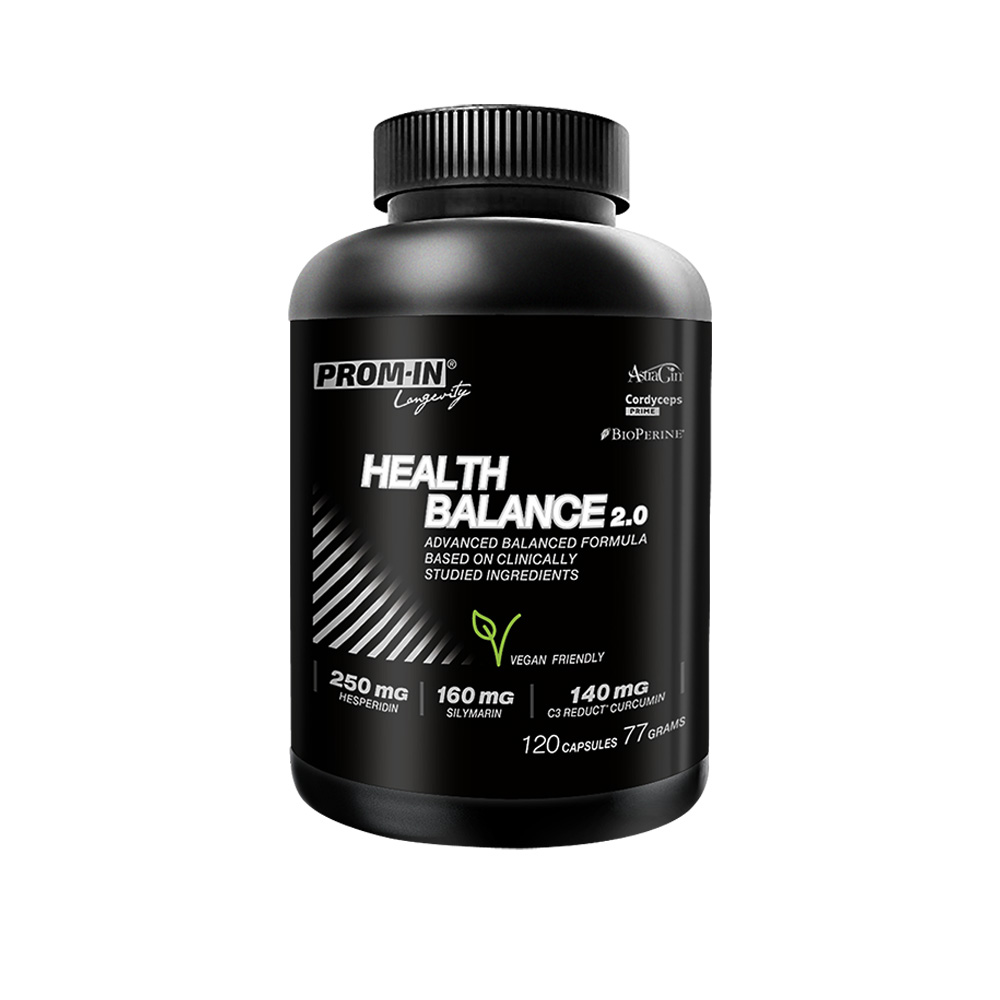 Health Balance 2.0 je vícesložkový doplněk stravy určený pro lidi dlouhodobě ve zvýšené zátěži a pro ty, kteří si po třicítce či čtyřicítce uvědomují, že tělo vyžaduje větší péči. Kombinuje silymarin se značkovými extrakty CordycepsPrime™, C3 Reduct®, AstraGin® a BioPerine® a další bioaktivní látky.
