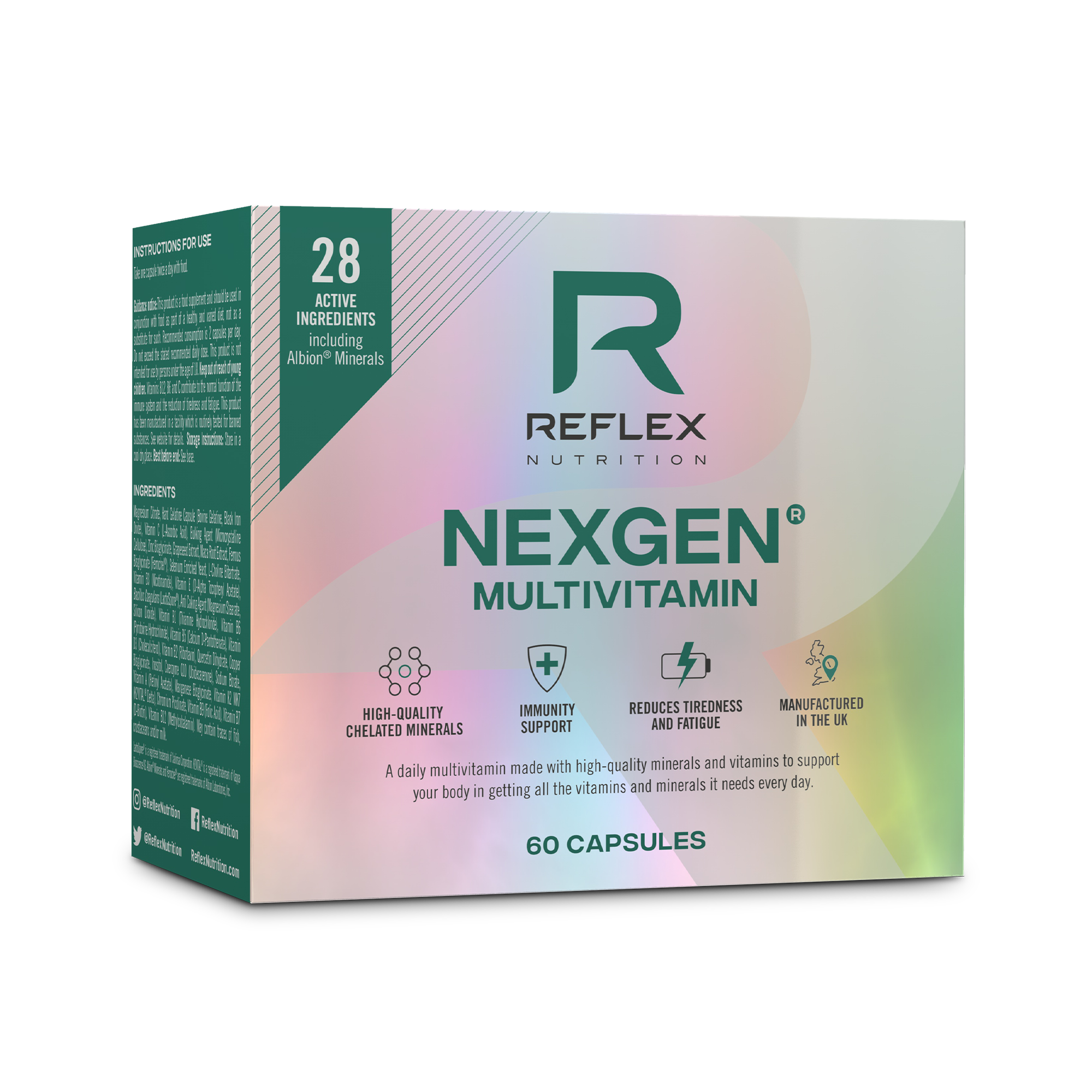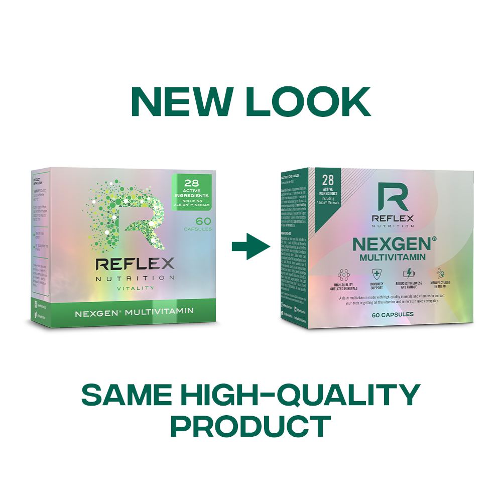 NEXGEN® = ŠPIČKOVÁ VYUŽITELNOST DĚLENÝ SYSTÉM DÁVKOVÁNÍ PRO MAXIMÁLNÍ VYUŽITELNOST A MINIMÁLNÍ ZTRÁTY - Denní dávka je na základě nejnovějších vědeckých poznatků rozdělena do dvou průběžných dávek (1 kapsle 2 x denně, vždy s jídlem), tak aby bylo tělo optimálně a rovnoměrně zásobeno v průběhu celého dne = maximální využitelnost + minimální ztráty (naše tělo není uzpůsobeno k tomu přijmout plnou dávku v jedné jednorázové tabletě = ztráty močí). Nexgen® tak nabízí sofistikované řešení „děleného“ multivitamínu ve formě kapslí, který byl sestaven pro průběžné dávkování během dne. I když je celý výrobní proces nákladnější, tedy pokud srovnáte například masovou výrobu jedné tablety (nejnižší náklady) versus dělená denní dávka ve třech kapslích, je pro společnost Reflex Nutrition vždy na prvním místě využitelnost, kvalita a zdraví.